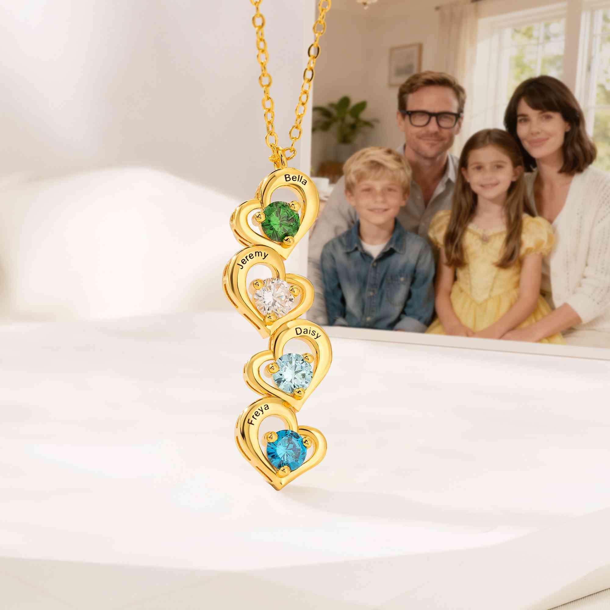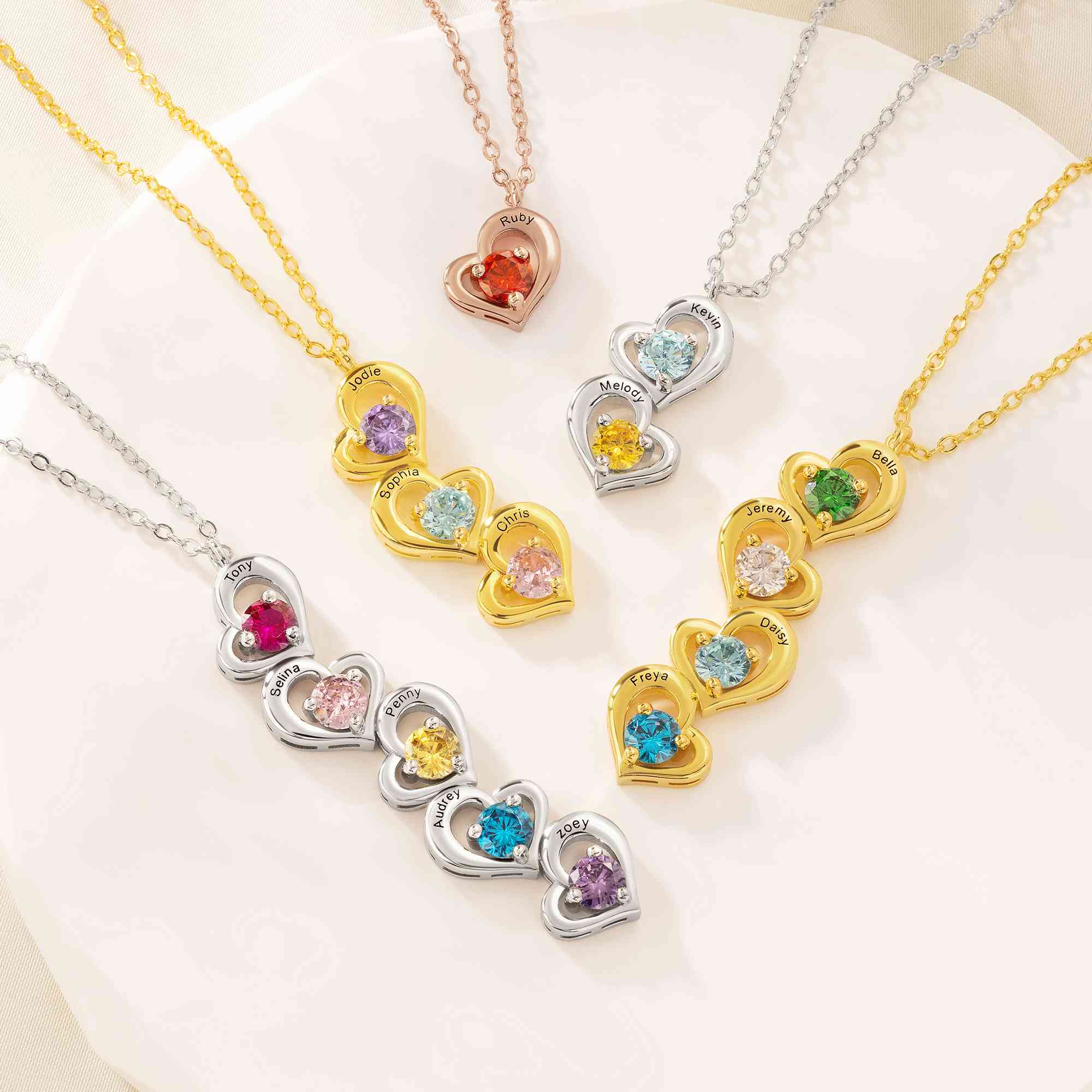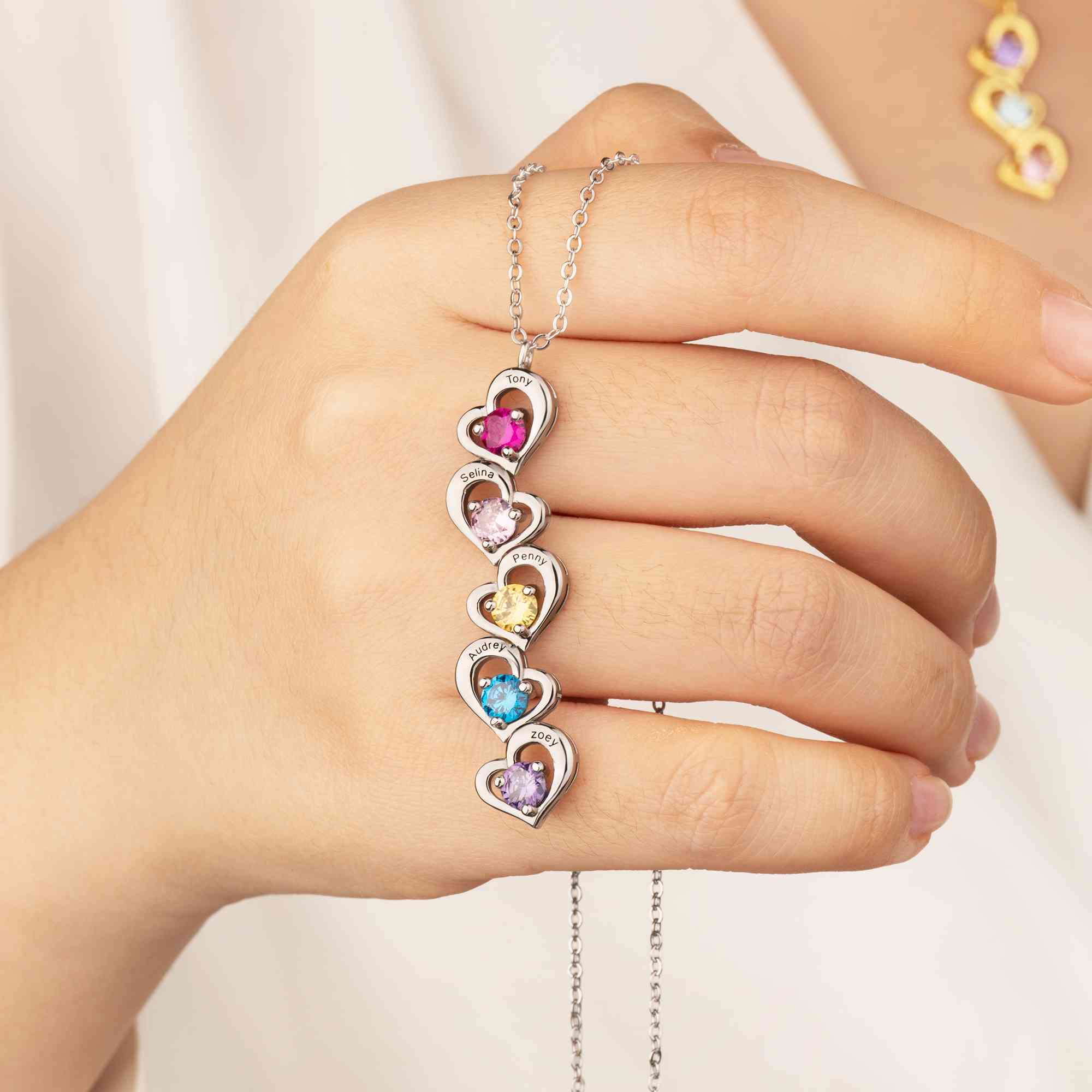 Personalized Touch - You can add 1–5 names along with matching birthstones on chosen number of hearts to celebrate children, partners, or family members. The engraved names and colorful stones bring a personal touch that turns the necklace into a keepsake you can cherish every day.